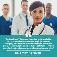 Relieve your knee pain and help your knee regain its balance with the RestoreKnee device, featuring gentle heat and infrared therapy.